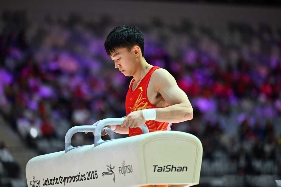 正在印尼雅加达进行的2025世界体操锦标赛里,洪延明以14.60分获得鞍马冠军,这是中国体操队在本届世锦赛第一枚金牌。